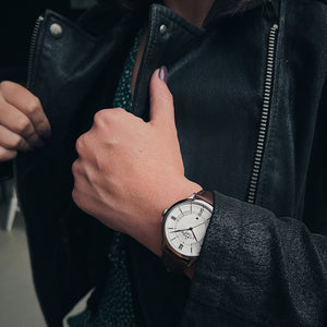 The No.274 Automatic edition is our unisex, Swiss Made automatic watch. This two-piece case, featuring varying finishes from the high polished bezel to the brushed side, is slim enough to slip under the cuff of a shirt but large enough to still feel substantial. The dial is the perfect combination of contemporary design with vintage inspiration. Classic enough to wear with a suit, edgy enough to dress down with a t-shirt and trainers.