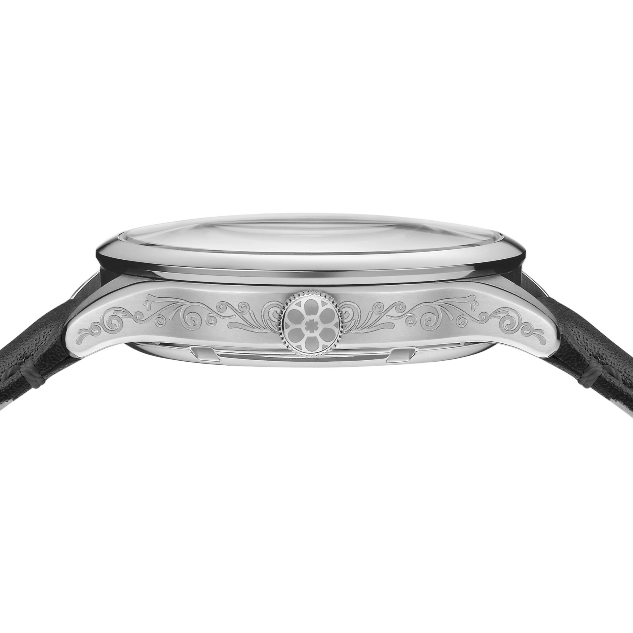 Contrary to the morose name, it serves as an inspiration to live each day as it comes and not get caught up in the stress of daily life. Because to remember you must die is to remember you must live. This edition features a black dial with subtle rose gold detailing and a black leather strap.