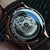 • STEEL CASE WITH OXBLOOD DIAL AND STEEL MESH BAND.