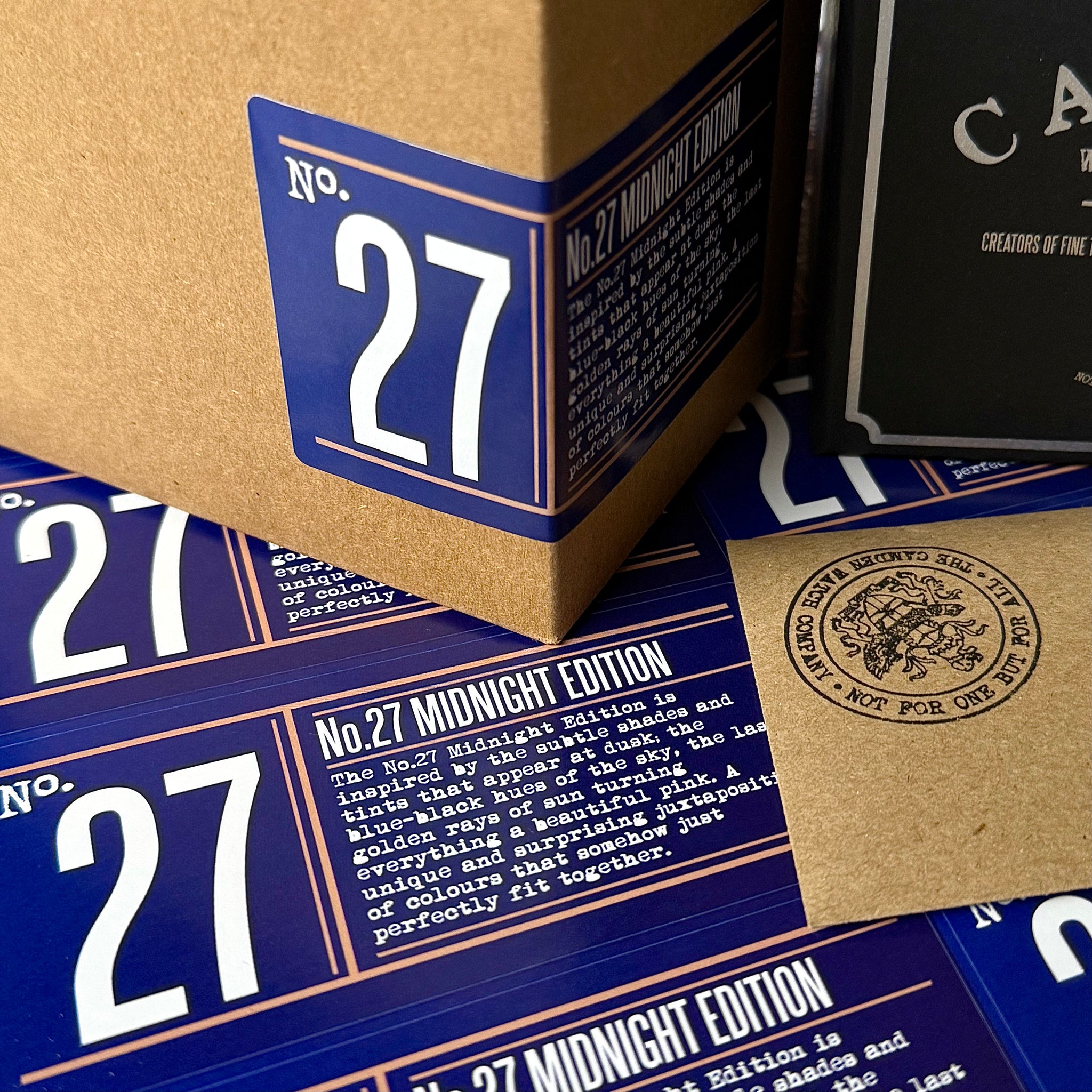 The No.27 Midnight Edition is inspired by the subtle shades and tints that appear at dusk; the blue-black hues of the sky, the last golden rays of sun turning everything a beautiful pink. So whether you're just going out, or already coming home, the No.27 Midnight edition might just be the perfect companion, a unique and surprising juxtaposition of colours that somehow just perfectly fit together.