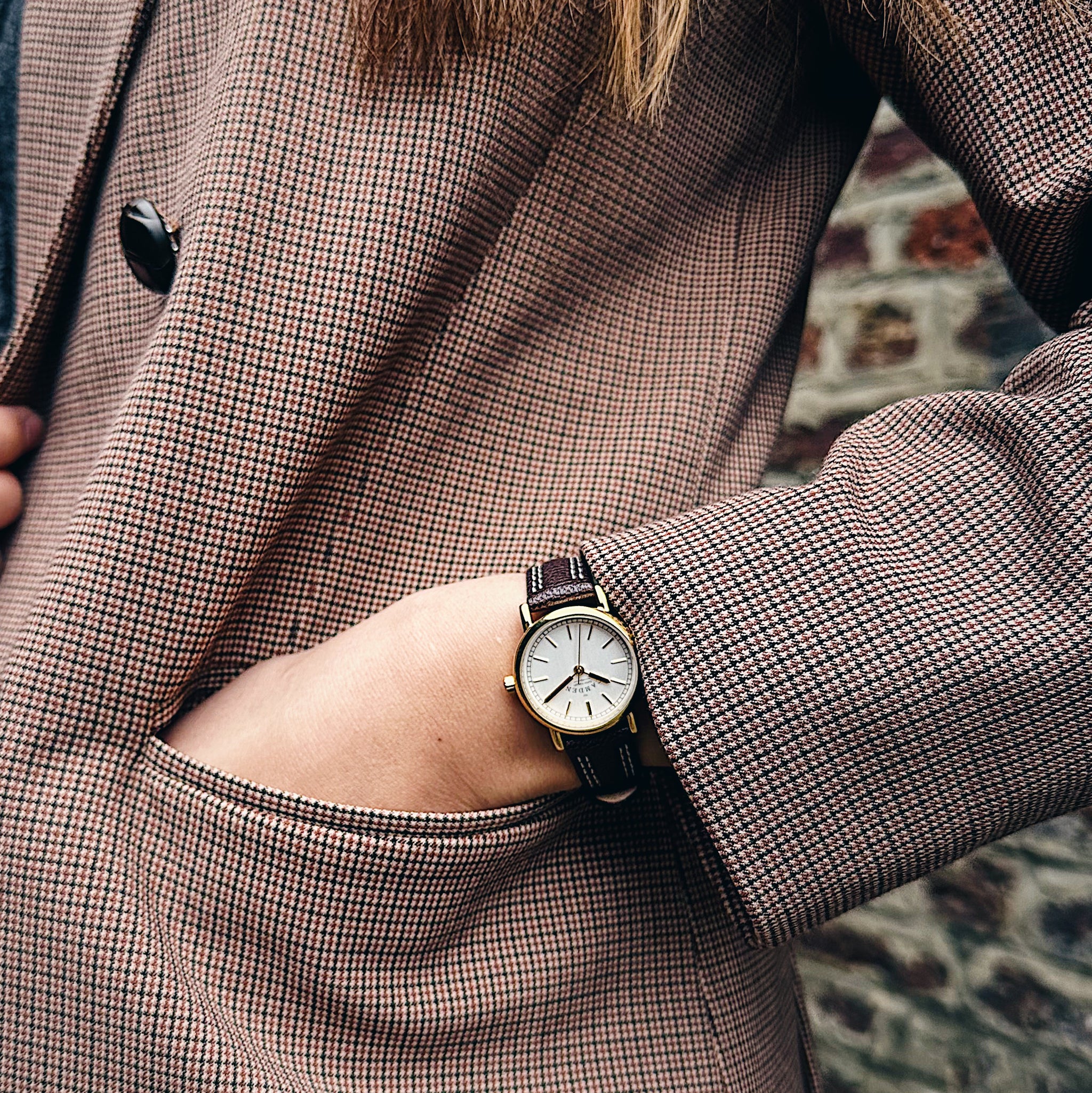 The No.24 is designed to be worn on its own or mixed with bracelets & bangles. The minutes are designed in what is known as a ‘train-track’, a fitting reminder of Camden’s industrial past.