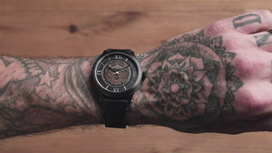 Contrary to the morose name, it serves as an inspiration to live each day as it comes and not get caught up in the stress of daily life. Because to remember you must die is to remember you must live. This edition features a black dial with subtle rose gold detailing and a black leather strap.