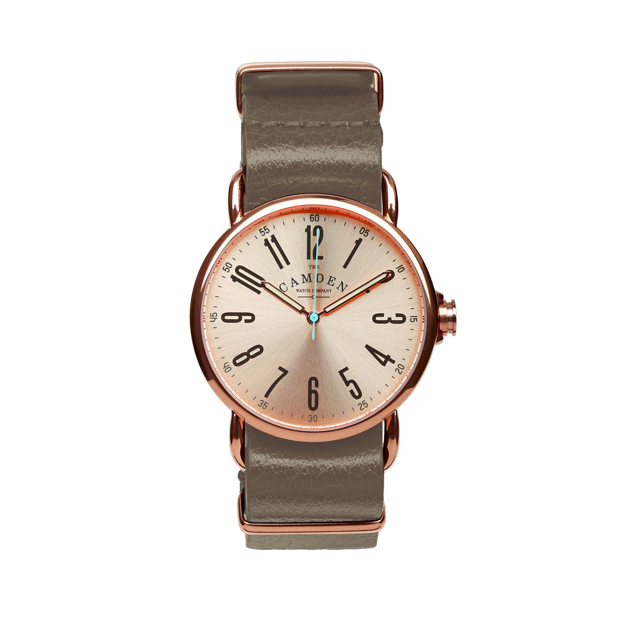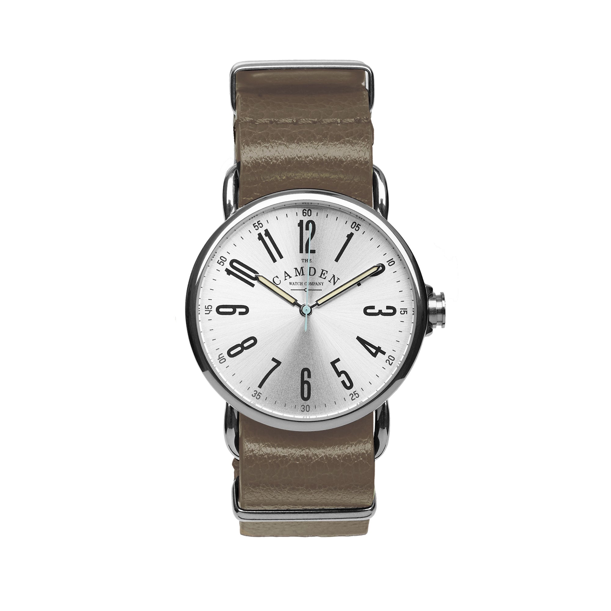 This is a smaller version of our classic and bestselling No.88. The lugs of the No.88 are based on those found classic vintage watches, in contrast to the modern case shape. The dial and crown are reminiscent of steam train gauges. The hand is the same turquoise-blue as the iconic Camden Lock bridge.