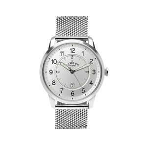 STEEL CASE WITH STEEL DIAL AND STAINLESS STEEL MESH BAND.