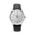 STEEL CASE WITH WHITE DIAL AND BROWN LEATHER STRAP.