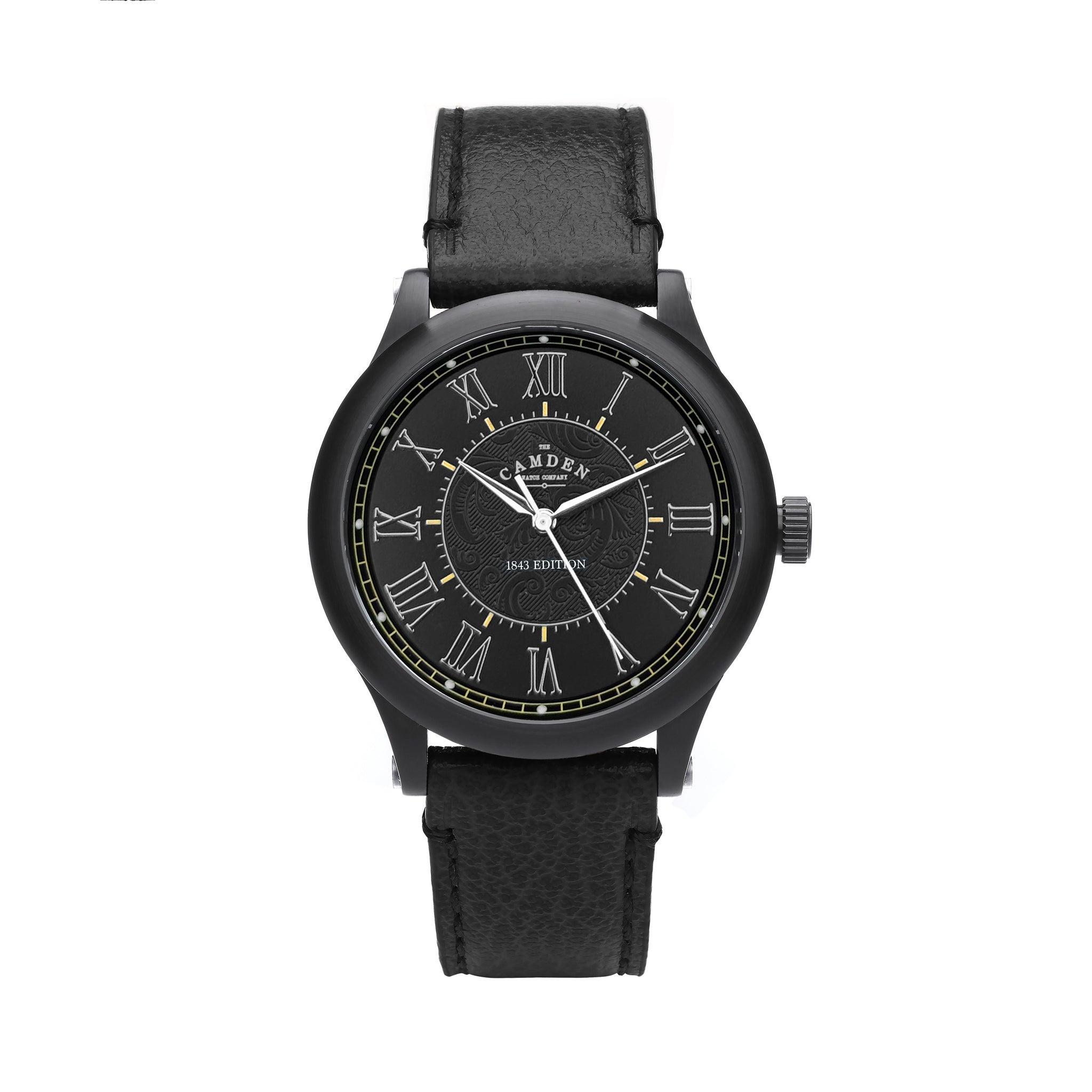 1843 BLACK WATCH AND BLACK LEATHER STRAP.