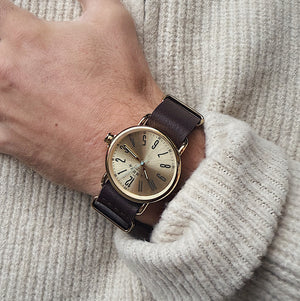 This is a smaller version of our classic and bestselling No.88. The lugs of the No.88 are based on those found on classic vintage watches, in contrast to the modern case shape. The dial and crown are reminiscent of steam train gauges. The