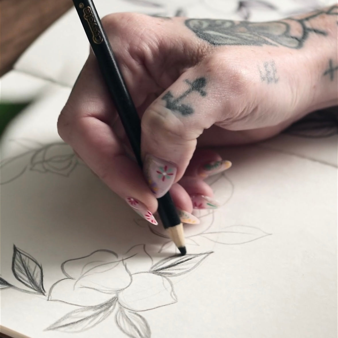 Rebecca has been working as a tattoo artist for the best part of a decade, over which time she has refined and developped a signature style that is instantly recognisable. Heavily inspired by the natural world, from epic floral sleeves to tiny mushrooms, beetles and bees, if it grows, buzzes or chirps, chances are, Rebecca has tattooed it on someone.
