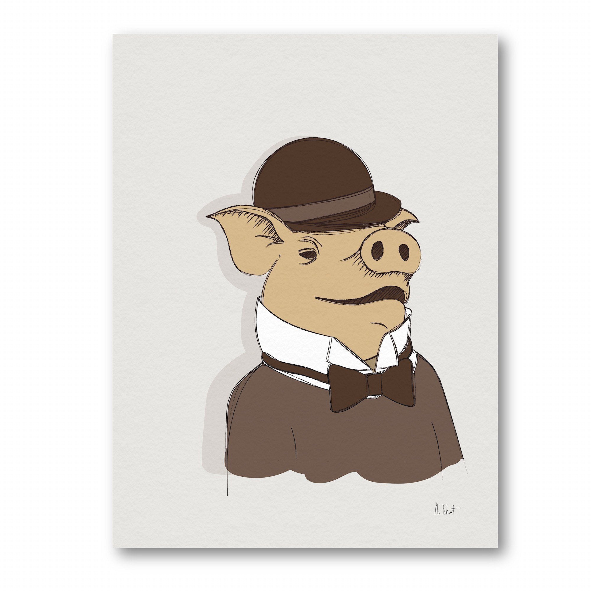 Mr. Porkingham hand-signed print. Printed onto White Linen paper, a heavyweight paper with a subtle linen...