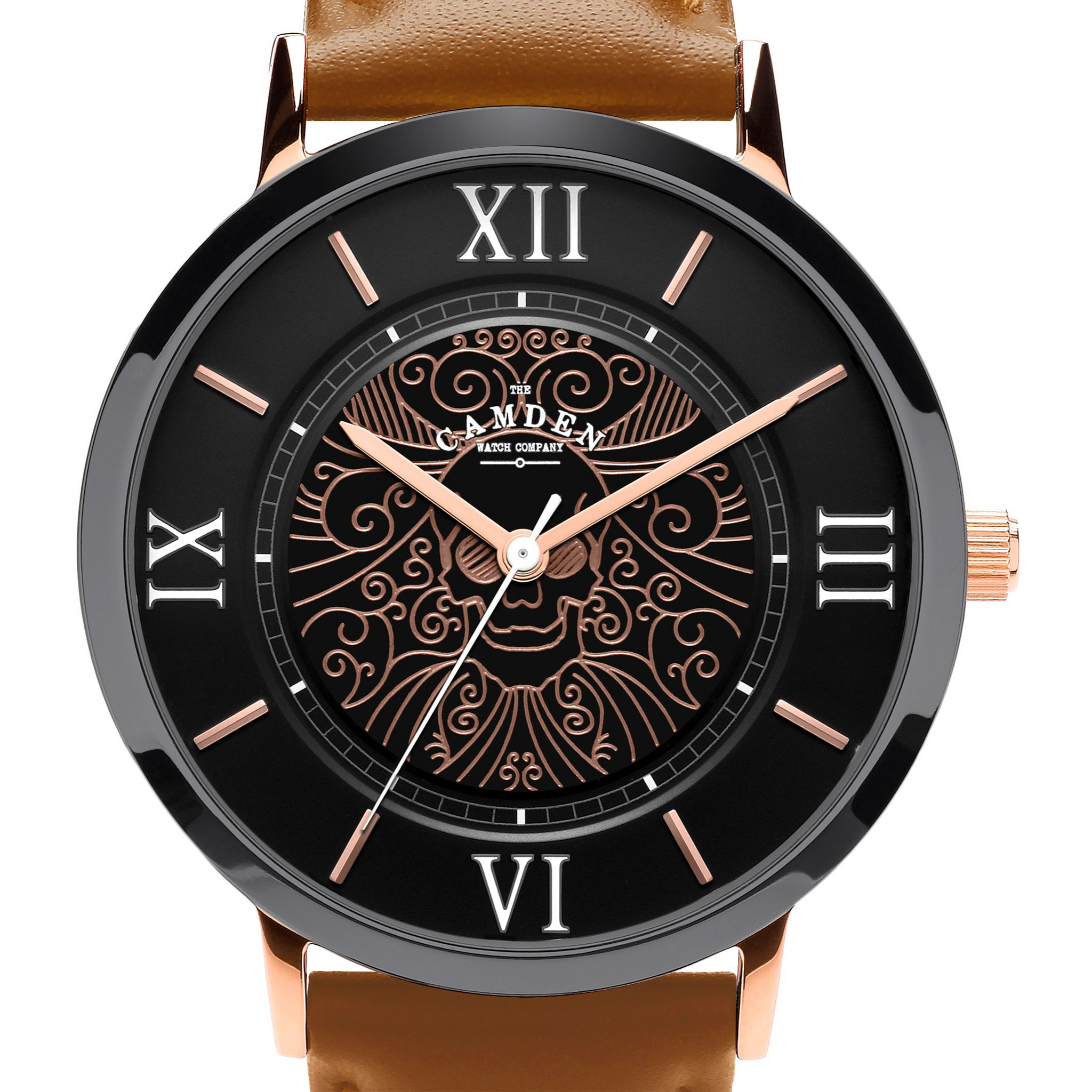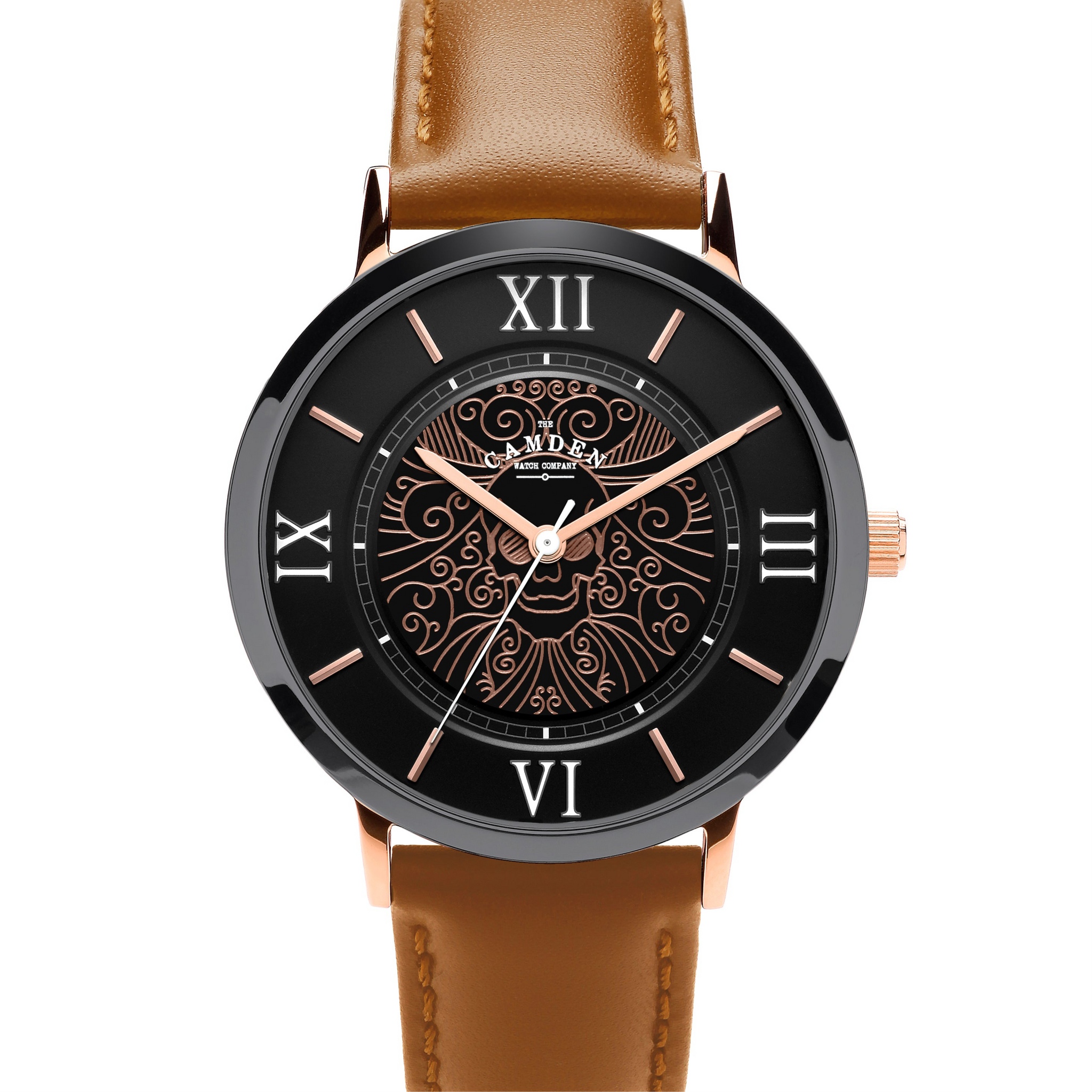 No.27 MEMENTO MORI BLACK WATCH AND TAN LEATHER STRAP.