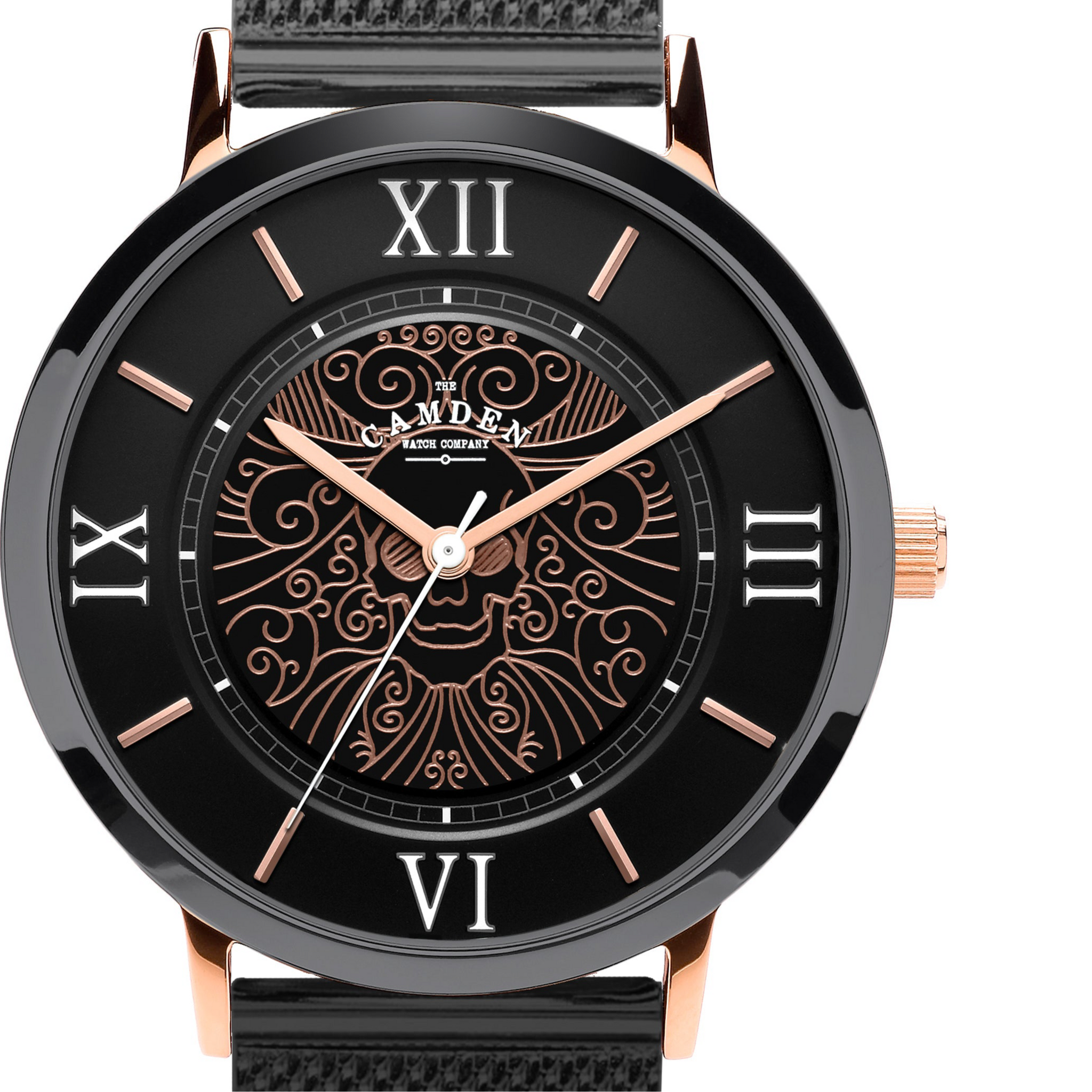 A No.24 Camden Watch designed in collaboration with tattoo artist Rebecca Vincent. Inspired by the Victorian Language of Flowers, Rebecca has brought her signature style to the white Mother of Pearl dial, making this monochrome watch a beautiful and striking addition to any wrist.