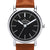 STEEL CASE WITH SILVER DIAL AND TAN LEATHER STRAP.