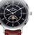 STEEL CASE WITH BLACK DIAL, ON A OXBLOOD LEATHER STRAP.
