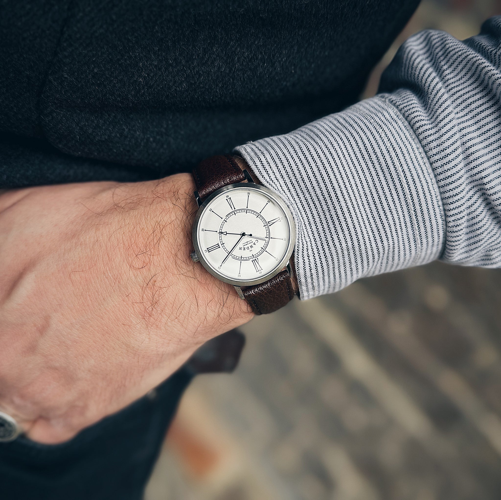 The No.27 Type II is a modern unisex timepiece that takes its cues from vintage clocks and pocket watches. The design has been stripped back to leave a minimalist face free of clutter, and the leather strap is textured and thick lending a refined yet robust feel to the watch.