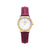 GOLD CASE WITH SILVER DIAL AND OXBLOOD LEATHER STRAP.