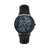 BLACK CASE WITH BLACK MOTHER OF PEARL DIAL AND BLACK LEATHER STRAP.