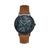 • BLACK CASE WITH BLACK MOTHER OF PEARL DIAL AND TAN LEATHER STRAP.