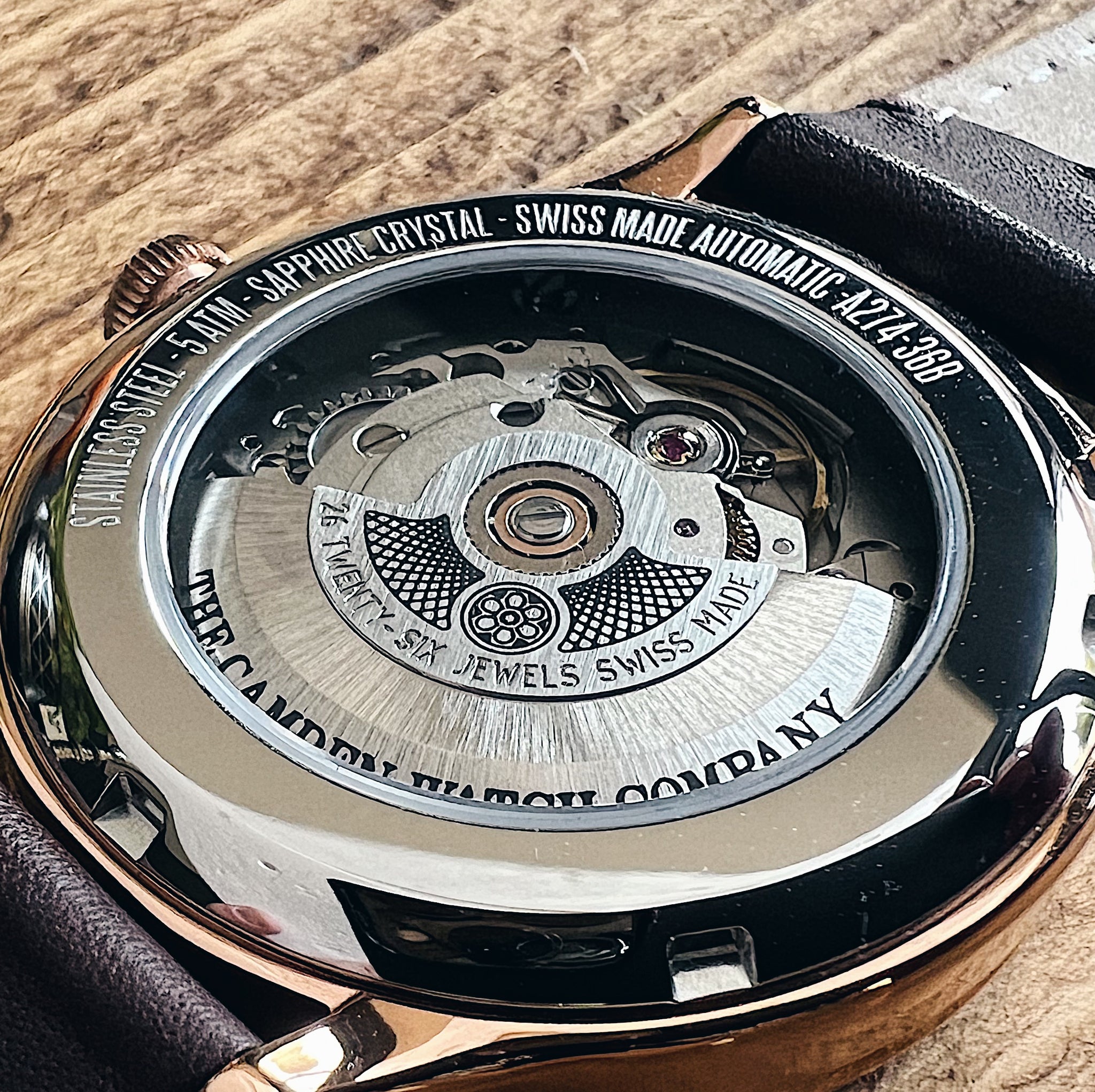 The No.274 Automatic edition is our unisex, Swiss Made automatic watch. This two-piece case, featuring varying finishes from the high polished bezel to the brushed side, is slim enough to slip under the cuff of a shirt but large enough to still feel substantial. The dial is the perfect combination of contemporary design with vintage inspiration. Classic enough to wear with a suit, edgy enough to dress down with a t-shirt and trainers.