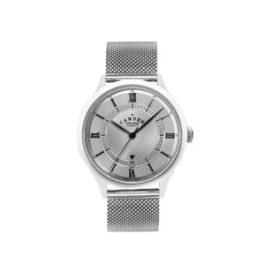 • STEEL CASE WITH WHITE DIAL AND STEEL MESH BAND.