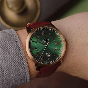 No.29 Automatic Rose Gold and Green on Oxblood Italian Leather