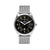 • STEEL CASE WITH BLACK DIAL AND STAINLESS STEEL MESH BAND.