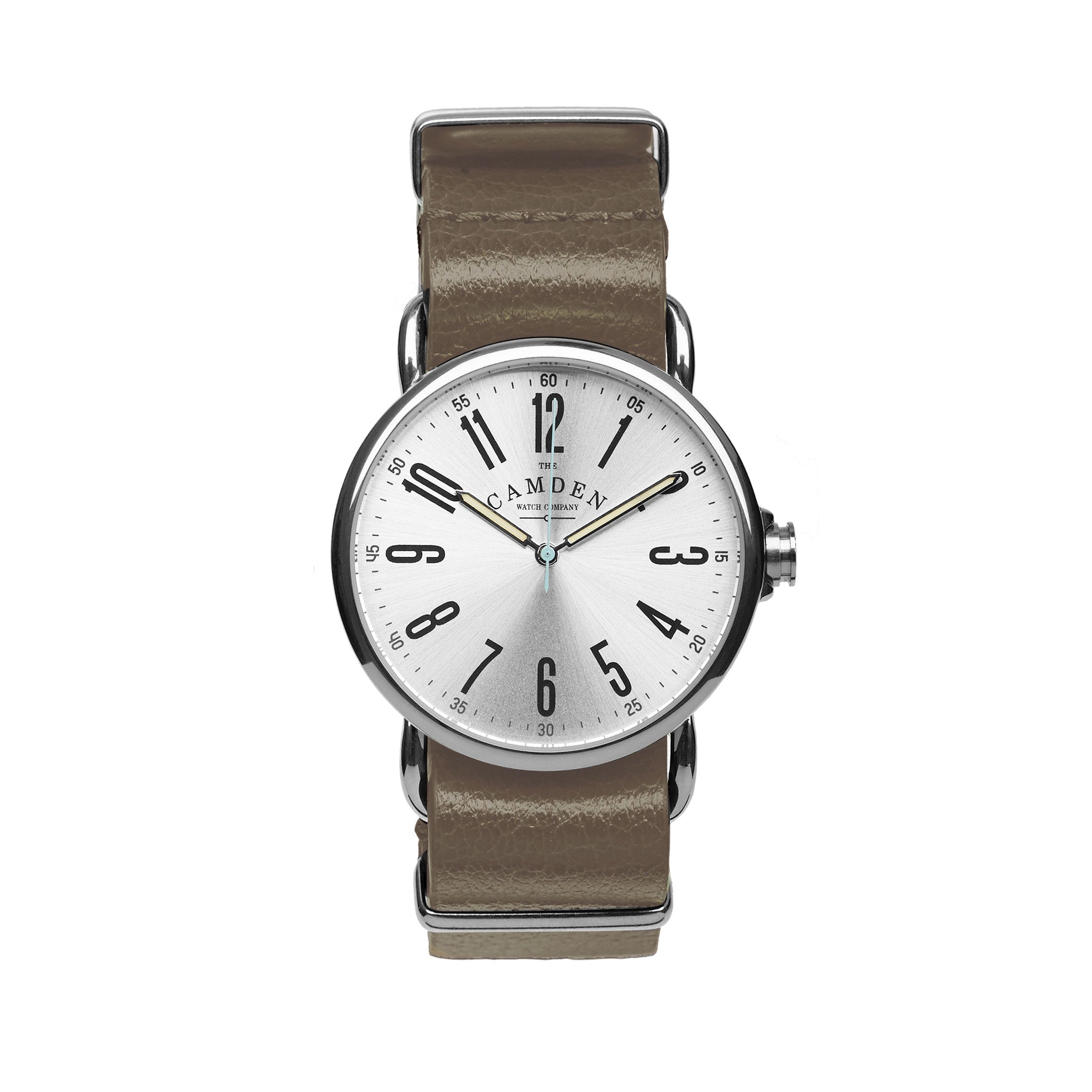 This is a smaller version of our classic and bestselling No.88. The lugs of the No.88 are based on those found classic vintage watches, in contrast to the modern case shape. The dial and crown are reminiscent of steam train gauges. The hand is the same turquoise-blue as the iconic Camden Lock bridge.